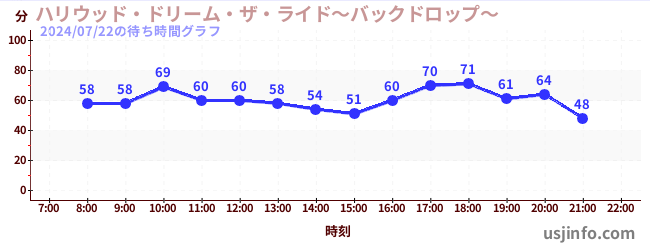 • ハリウッド・ドリーム・ザ・ライド〜バックドロップ〜$B$N(B2024年07月22日の待ち時間