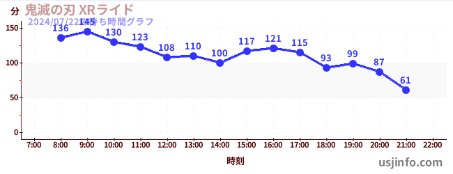 • 鬼滅の刃 XRライド$B$N(B2024年07月22日の待ち時間