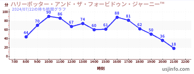 • ハリーポッター・アンド・ザ・フォービドゥン・ジャーニー™$B$N(B2024年07月22日の待ち時間
