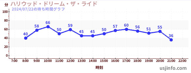• ハリウッド・ドリーム・ザ・ライド$B$N(B2024年07月22日の待ち時間