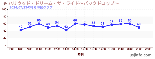 • ハリウッド・ドリーム・ザ・ライド〜バックドロップ〜$B$N(B2024年07月23日の待ち時間