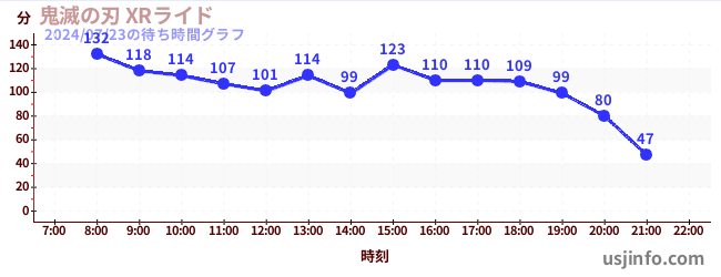 • 鬼滅の刃 XRライド$B$N(B2024年07月23日の待ち時間