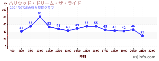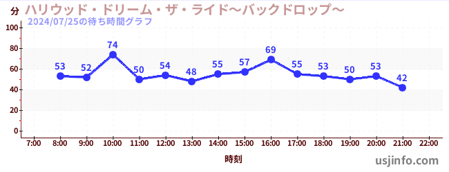 • ハリウッド・ドリーム・ザ・ライド〜バックドロップ〜$B$N(B2024年07月25日の待ち時間