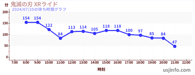 • 鬼滅の刃 XRライド$B$N(B2024年07月25日の待ち時間