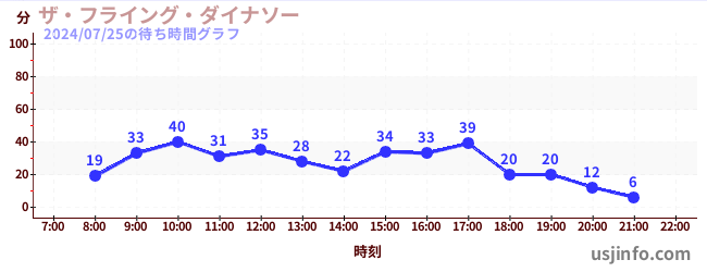 • ザ・フライング・ダイナソー$B$N(B2024年07月25日の待ち時間