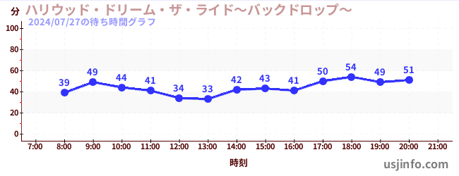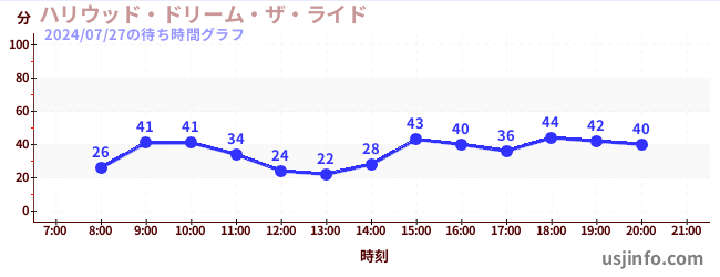 • ハリウッド・ドリーム・ザ・ライド〜バックドロップ〜$B$N(B2024年07月27日の待ち時間