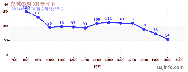• 鬼滅の刃 XRライド$B$N(B2024年07月27日の待ち時間