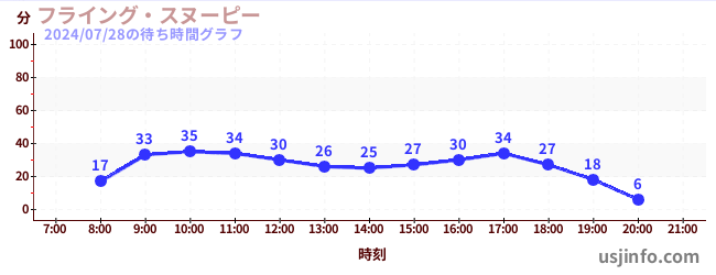 • フライング・スヌーピー$B$N(B2024年07月28日の待ち時間