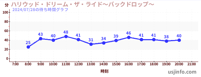 • ハリウッド・ドリーム・ザ・ライド〜バックドロップ〜$B$N(B2024年07月28日の待ち時間