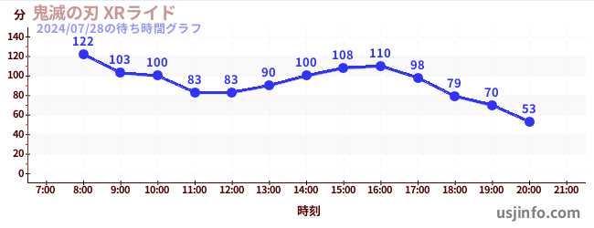 • 鬼滅の刃 XRライド$B$N(B2024年07月28日の待ち時間