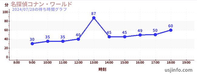 • 名探偵コナン・ワールド$B$N(B2024年07月28日の待ち時間
