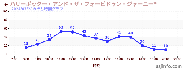 • ハリーポッター・アンド・ザ・フォービドゥン・ジャーニー™$B$N(B2024年07月28日の待ち時間