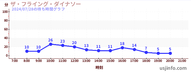 • ザ・フライング・ダイナソー$B$N(B2024年07月28日の待ち時間