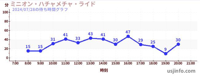 • ミニオン・ハチャメチャ・ライド$B$N(B2024年07月28日の待ち時間