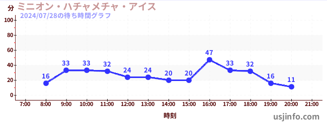 • ミニオン・ハチャメチャ・アイス$B$N(B2024年07月28日の待ち時間