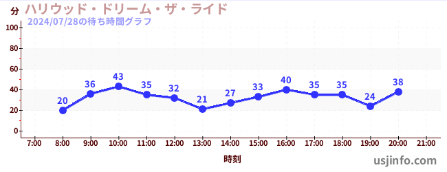 • ハリウッド・ドリーム・ザ・ライド$B$N(B2024年07月28日の待ち時間