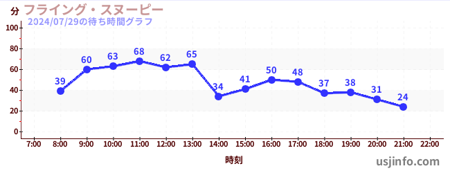 • フライング・スヌーピー$B$N(B2024年07月29日の待ち時間