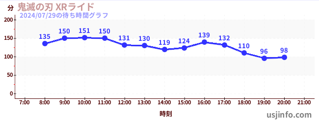 • 鬼滅の刃 XRライド$B$N(B2024年07月29日の待ち時間