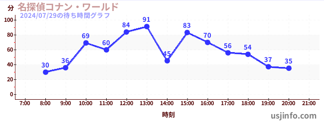 • 名探偵コナン・ワールド$B$N(B2024年07月29日の待ち時間