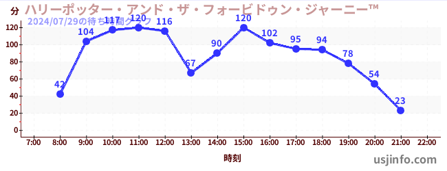 • ハリーポッター・アンド・ザ・フォービドゥン・ジャーニー™$B$N(B2024年07月29日の待ち時間