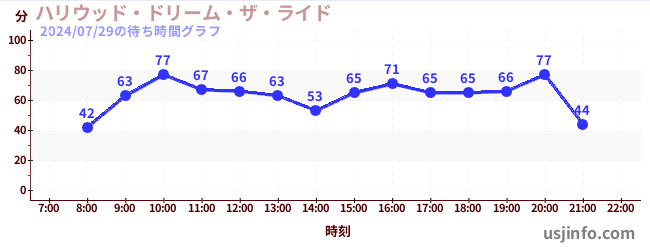 • ハリウッド・ドリーム・ザ・ライド〜バックドロップ〜$B$N(B2024年07月29日の待ち時間