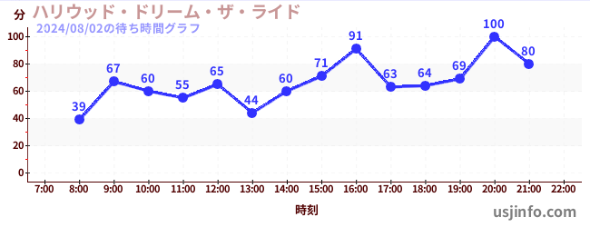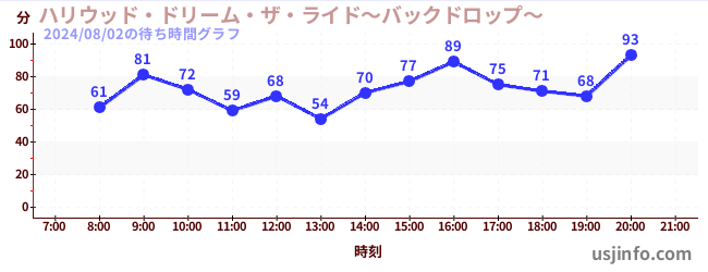 • ハリウッド・ドリーム・ザ・ライド〜バックドロップ〜$B$N(B2024年08月02日の待ち時間