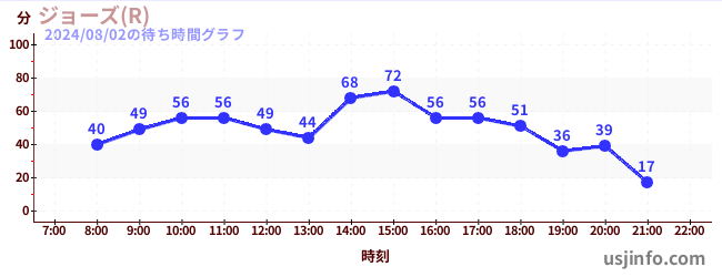 • ジョーズ(R)$B$N(B2024年08月02日の待ち時間