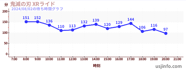 • 鬼滅の刃 XRライド$B$N(B2024年08月02日の待ち時間