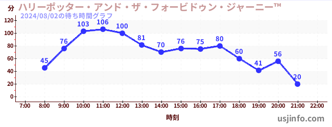 • ハリーポッター・アンド・ザ・フォービドゥン・ジャーニー™$B$N(B2024年08月02日の待ち時間