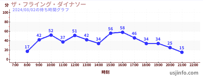 • ハリウッド・ドリーム・ザ・ライド$B$N(B2024年08月02日の待ち時間