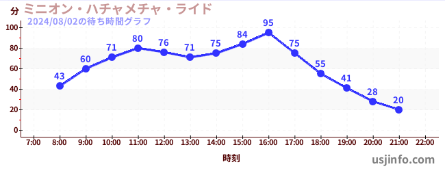 • ミニオン・ハチャメチャ・ライド$B$N(B2024年08月02日の待ち時間