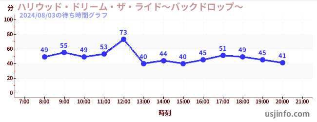 • ハリウッド・ドリーム・ザ・ライド〜バックドロップ〜$B$N(B2024年08月03日の待ち時間