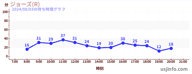 • ジョーズ(R)$B$N(B2024年08月03日の待ち時間