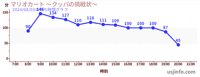 • マリオカート ~クッパの挑戦状~$B$N(B2024年08月03日の待ち時間