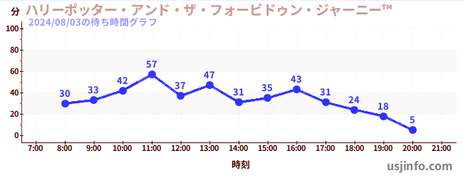• ハリーポッター・アンド・ザ・フォービドゥン・ジャーニー™$B$N(B2024年08月03日の待ち時間