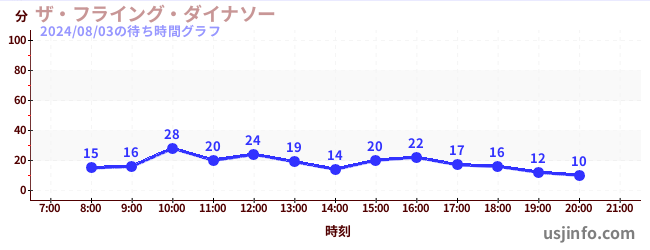 • ザ・フライング・ダイナソー$B$N(B2024年08月03日の待ち時間