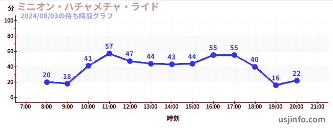 • ミニオン・ハチャメチャ・ライド$B$N(B2024年08月03日の待ち時間