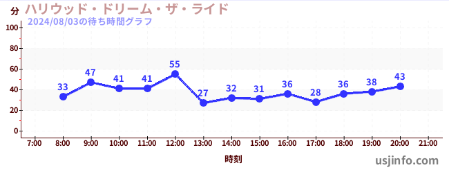 • ハリウッド・ドリーム・ザ・ライド$B$N(B2024年08月03日の待ち時間