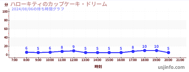 • ハローキティのカップケーキ・ドリーム$B$N(B2024年08月06日の待ち時間