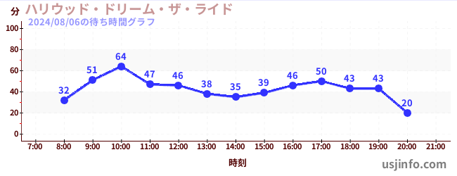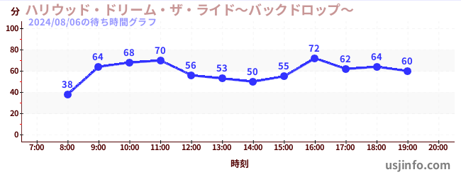 • ハリウッド・ドリーム・ザ・ライド〜バックドロップ〜$B$N(B2024年08月06日の待ち時間