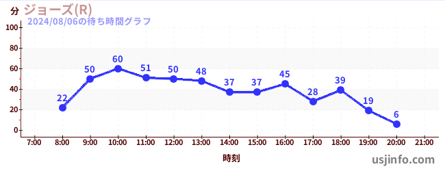 • ジョーズ(R)$B$N(B2024年08月06日の待ち時間