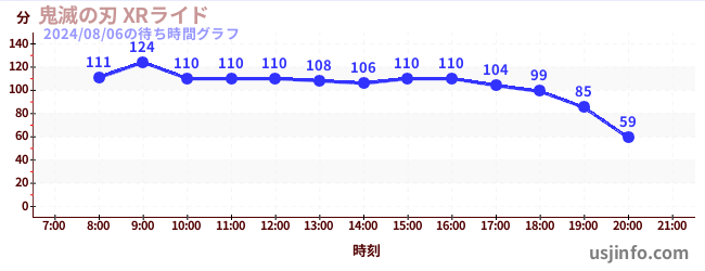 • 鬼滅の刃 XRライド$B$N(B2024年08月06日の待ち時間