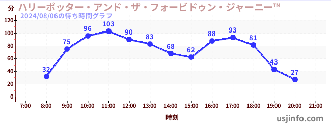 • ハリーポッター・アンド・ザ・フォービドゥン・ジャーニー™$B$N(B2024年08月06日の待ち時間