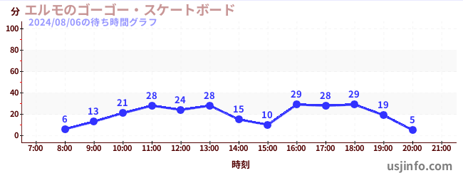 • エルモのゴーゴー・スケートボード$B$N(B2024年08月06日の待ち時間