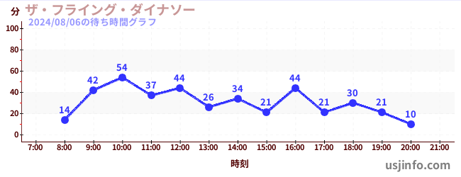 • ザ・フライング・ダイナソー$B$N(B2024年08月06日の待ち時間
