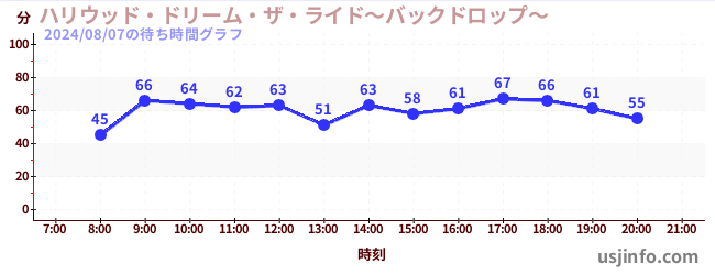 • ハリウッド・ドリーム・ザ・ライド〜バックドロップ〜$B$N(B2024年08月07日の待ち時間