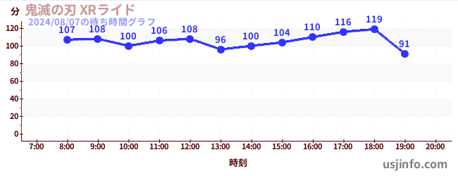 • 鬼滅の刃 XRライド$B$N(B2024年08月07日の待ち時間