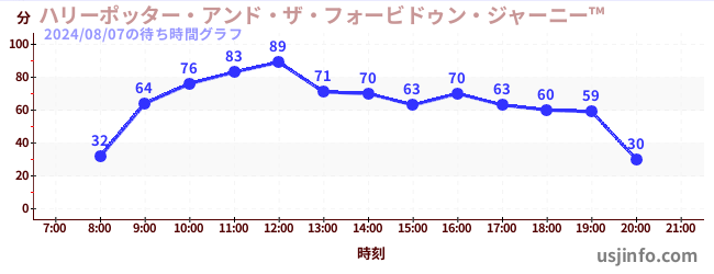 • ハリーポッター・アンド・ザ・フォービドゥン・ジャーニー™$B$N(B2024年08月07日の待ち時間