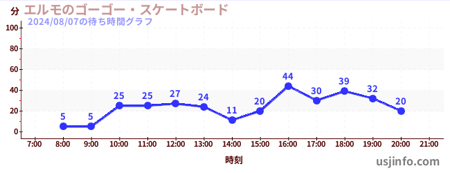 • エルモのゴーゴー・スケートボード$B$N(B2024年08月07日の待ち時間