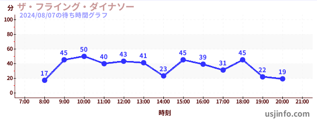 • ザ・フライング・ダイナソー$B$N(B2024年08月07日の待ち時間